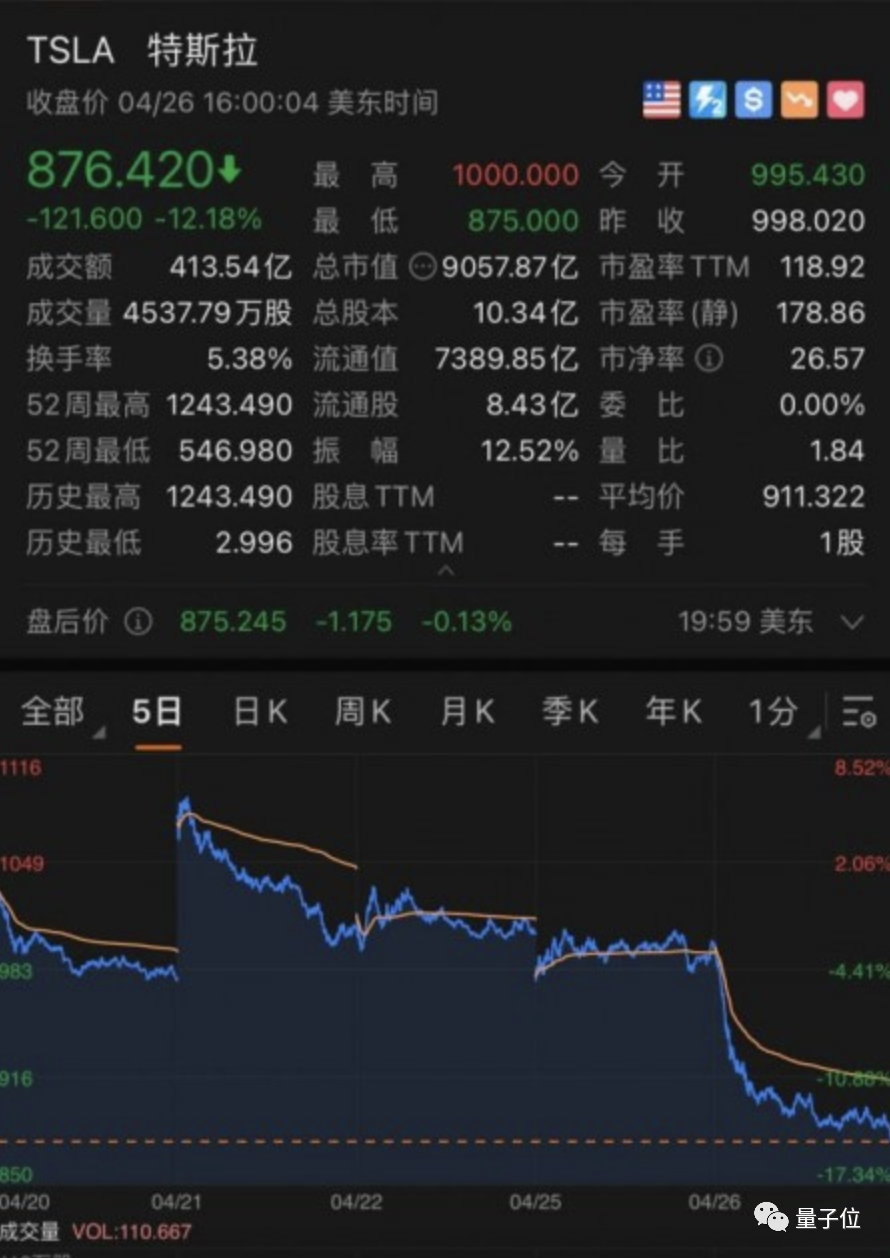 暴跌逾12%,特斯拉市值蒸发超过1250亿美元。