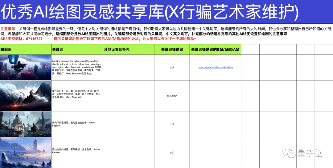 AI绘图灵感共享库:https://docs.qq.com/sheet/DWFR0VmpQa3ZtbXda