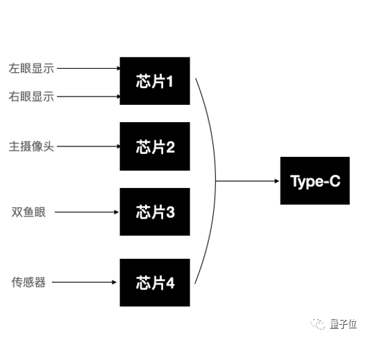 △图为目前市面上AR眼镜的主流芯片方案;当前普遍的“芯片拼搭模式”不仅带来更大的PCB面积,还造成更高的功耗,更大的佩戴尺寸