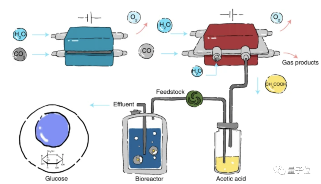 可以将二氧化碳高效还原合成高浓度乙酸,并进一步利用微生物合成葡萄糖和脂肪酸。