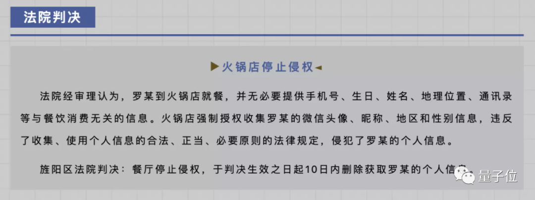 法院认为,这个案件中火锅店提取的微信头像、昵称、地区和性别信息,通常无法识别出特定自然人。此时,该信息并非法律保护的个人信息。