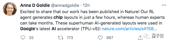 这种方法适用于任何类型的芯片设计,并且已经被用在生产下一代Google TPU上。