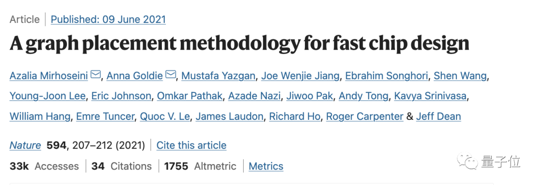 去年6月,谷歌在Nature上发表了一篇文章:A graph placement methodology for fast chip design,其中Jeff Dean是作者之一。