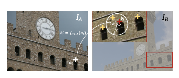 就如圆圈中特征点,正是LIFE预测下找到与原图像最匹配的点。