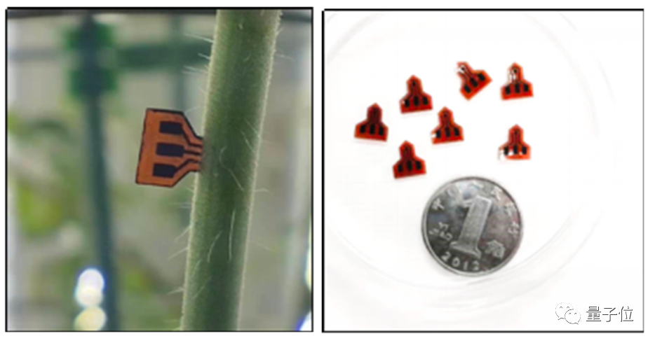 像这个小到只有硬币几分之一大小的传感器,它就能实时感知植物是否遭到“胁迫”。