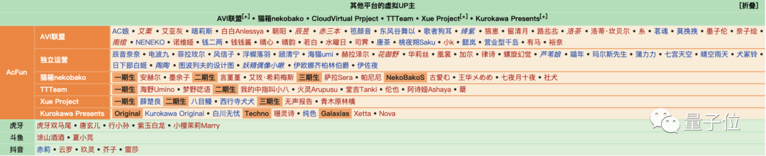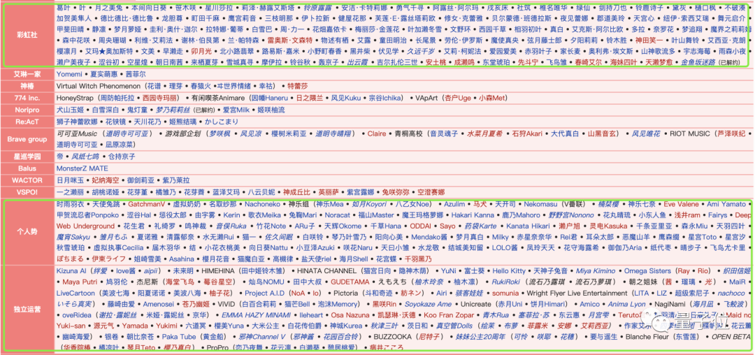 目前还没有形成能和彩虹社规模相匹敌的公司,小团队和独立运营的主播也居多,国内规模较大的VirtuaReal企划正是B站和彩虹社合作产生(推出了70多名虚拟UP主);而直播平台除了B站,在A站也有少数。