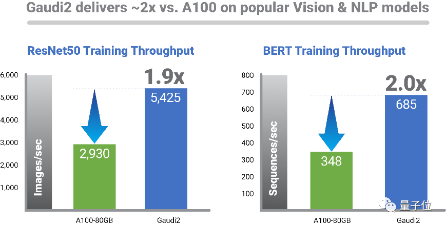 性能方面,英特尔在发布会上也与A100做了直接对比,训练吞吐量达到A100的约两倍。