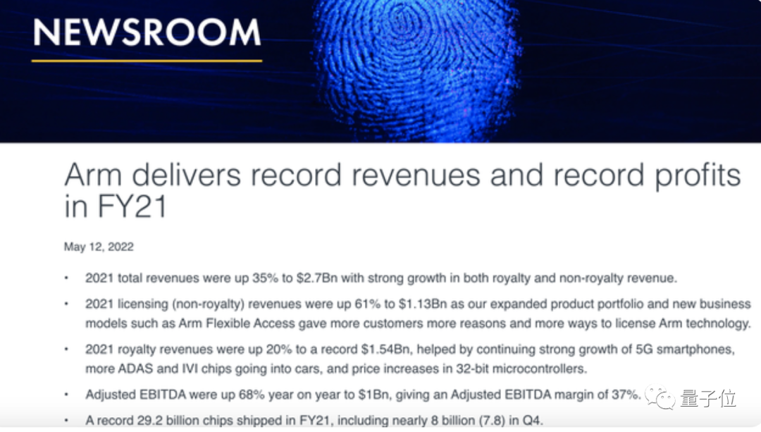 据软银旗下公司ARM昨日公布的2021年财报,ARM2021年营收为27亿美元,比上年增长35%,创下历史纪录。