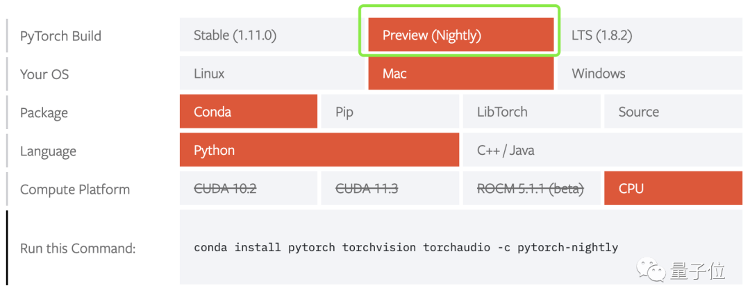 只需保证你的macOS操作系统在12.3版本及以上,且安装了arm64原生Python,然后去官网下载最新的Pytorch预览版就可以了。