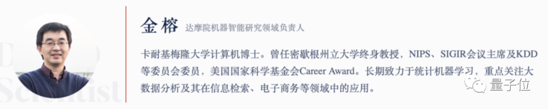 达摩院官网信息显示,金榕担任达摩院智能研究领域负责人,长期致力于统计机器学习,重点关注大数据分析及其在信息检索、电子商务等领域中的应用。