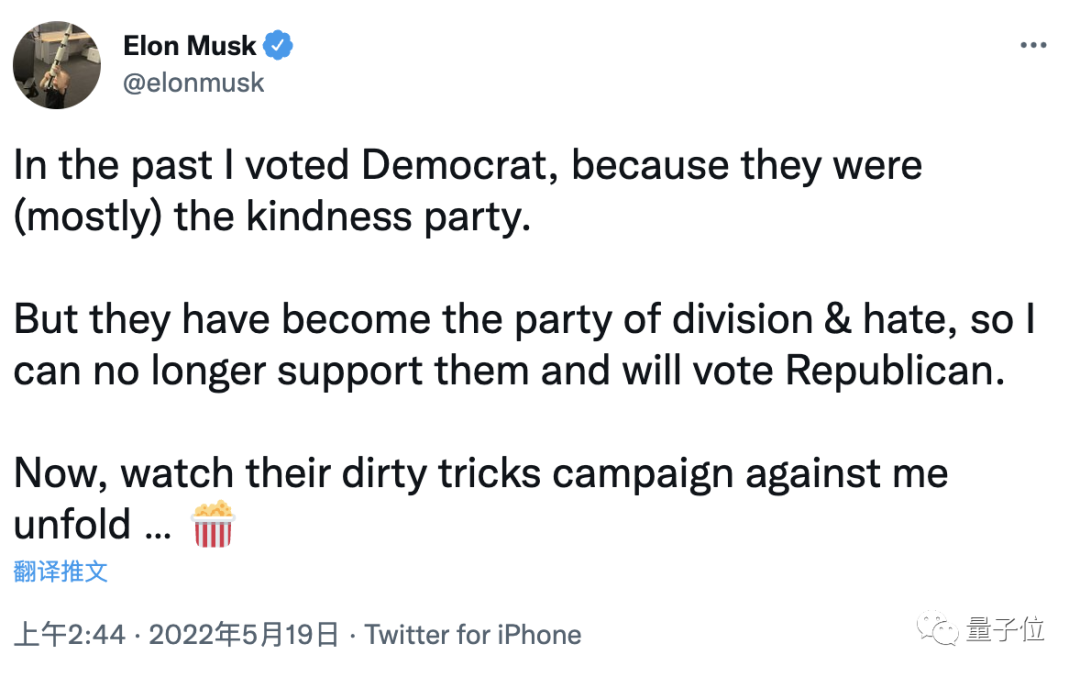 过了不久,他再次发文,表示下次选举自己要支持共和党了。
