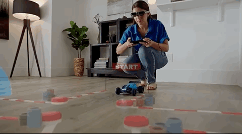 现在,只需要一副AR眼镜、一个手机,就能在家里沉浸式开赛车(没错,甚至不需要建立赛道):