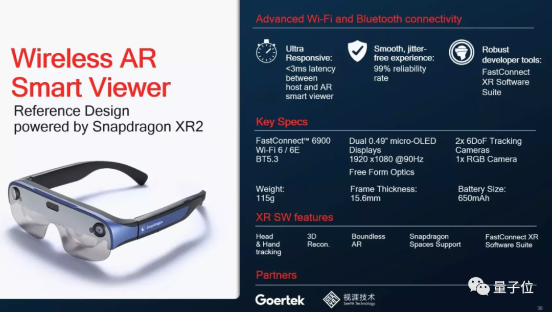 有意思的是,高通这次还在发布会上整了个真·无线的AR眼镜参考设计。