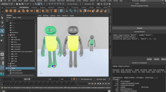 同理,在三维建模和动画软件Maya身上,大模型也在悄然改变着它的工作方式。