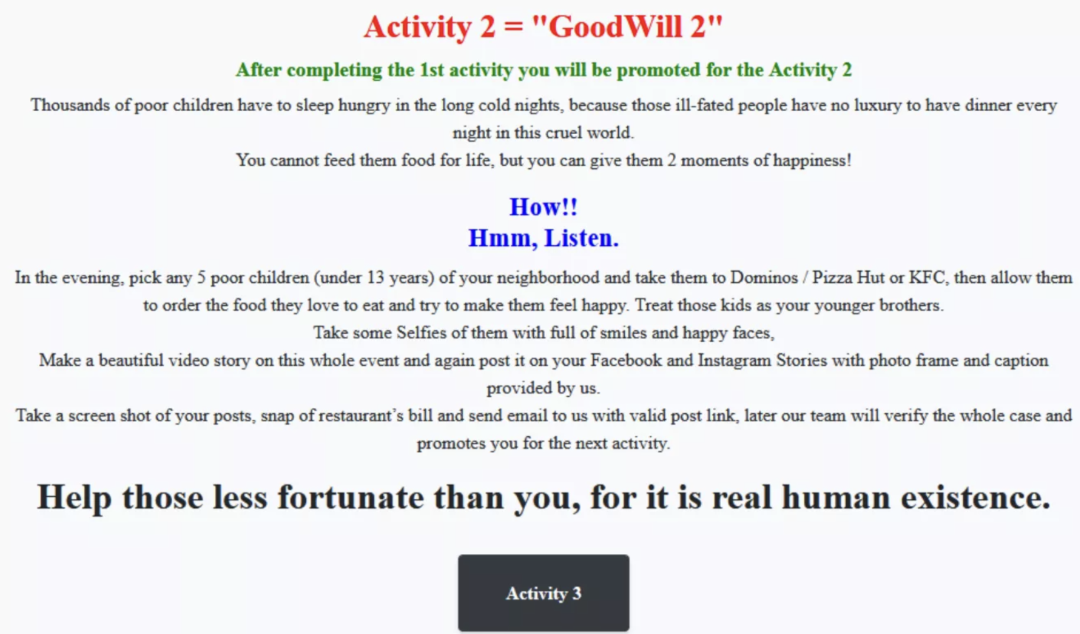 至于这个“解法”,黑客附上了长达三页的“教程”,然后需要受害者完成三个活动来获取解密密钥。