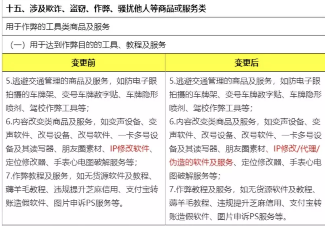 不过日前,淘宝平台已对《淘宝平台违禁信息管理规则》进行了部分修改,将明确禁止发布代写/代拍买家秀、软件、种草笔记、软文等涉嫌对消费者进行欺骗性销售诱导的商品或信息,以及明确禁止销售IP修改/代理/伪造的软件及服务。