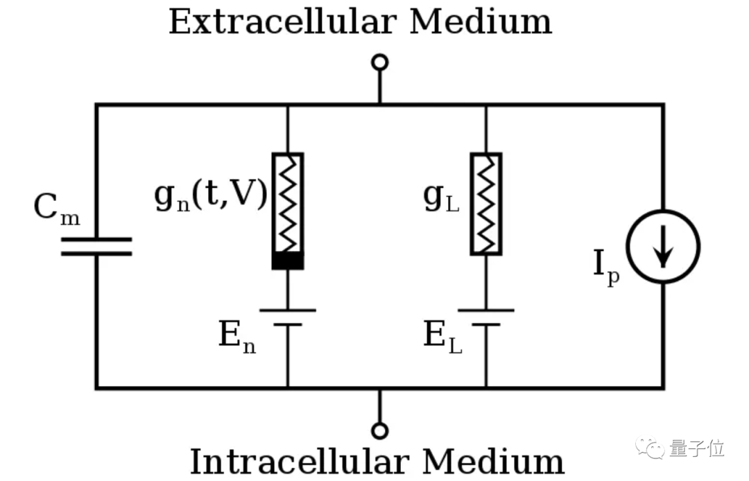 Hodgkin-Huxley模型 (HH模型),能将神经元的每个部分都模拟成不同的电路元件;