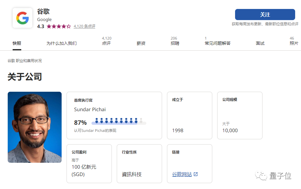 相比之下,谷歌CEO皮猜和苹果CEO库克都有87%的好评率。