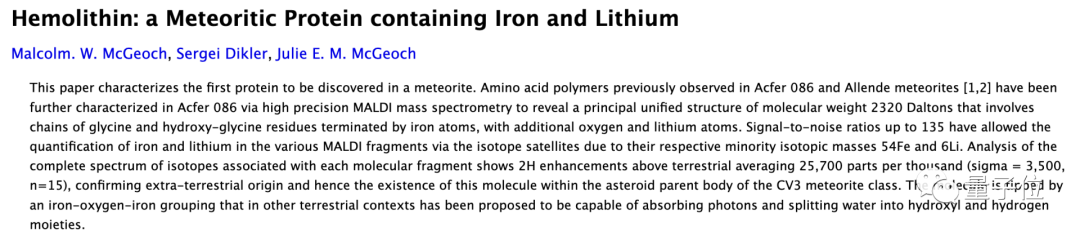 2020年,来自哈佛以及两家公司PLEX和布鲁克科的科学家,首次在陨石中发现蛋白质。
