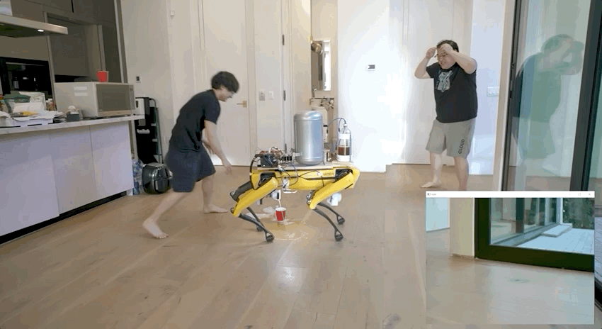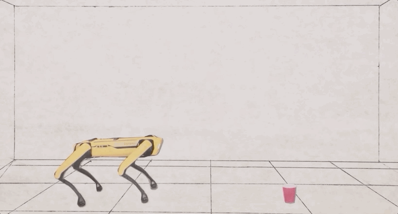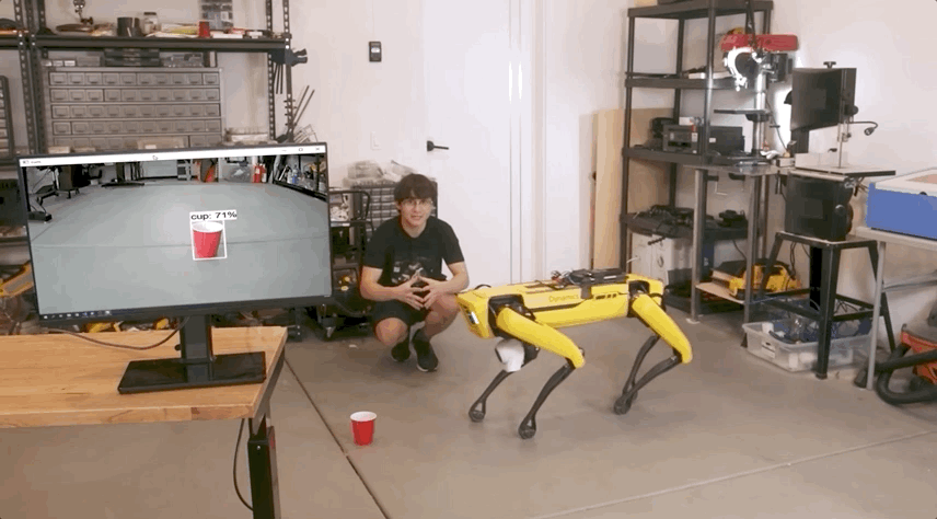 最终他选择在亚马逊上买了30美元的廉价监控摄像头。将它安装到机器狗上,并在电脑上写好程序,这样,机器狗就能识别尿杯红色杯子,然后到指定位置。