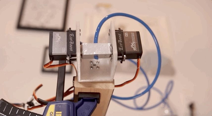 博主采用了伺服驱动的双轴云台,通过上下左右移动来跟踪目标;再用平时输送啤酒的管道充当尿道。