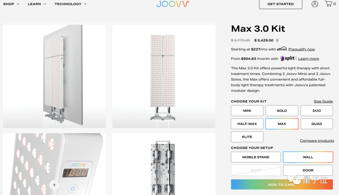 另一家公司Joovv,生产各种尺寸的近红外光灯板,使用方法是照射全身,价格也要5000美元。
