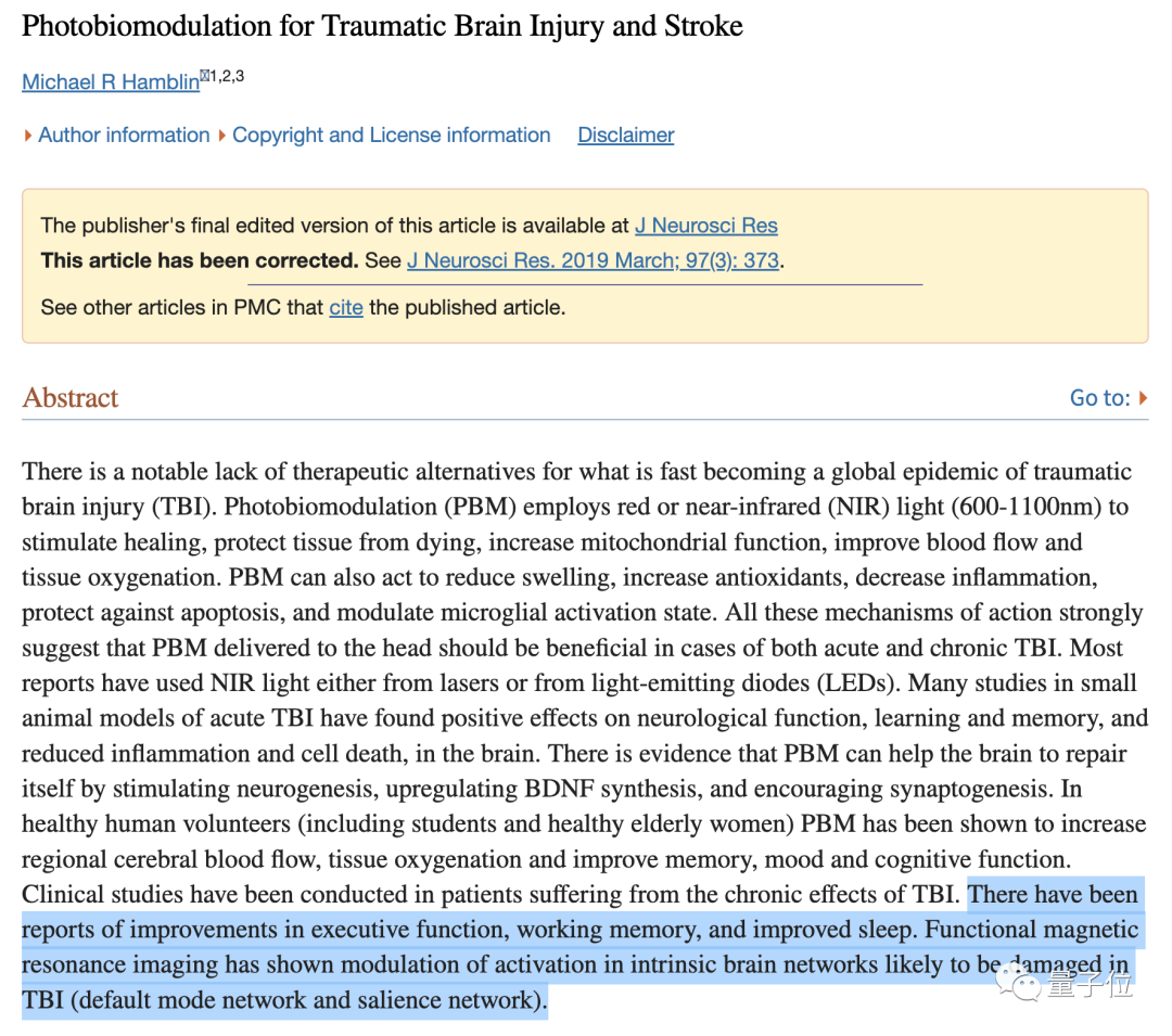 这篇名为《Photobiomodulation for Traumatic Brain Injury and Stroke》的论文介绍道: