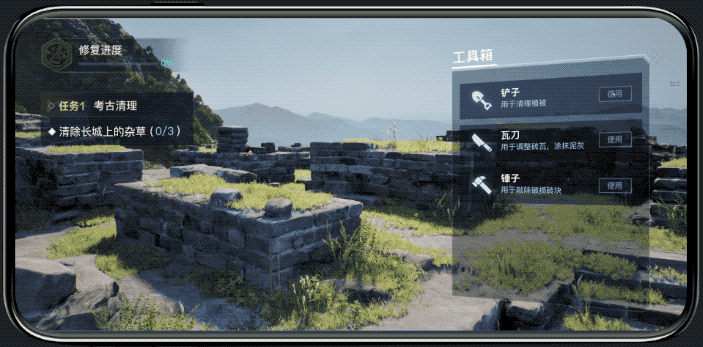 在了解完相关知识后,向前继续前行,便接到了第一个修缮任务——考古清理。