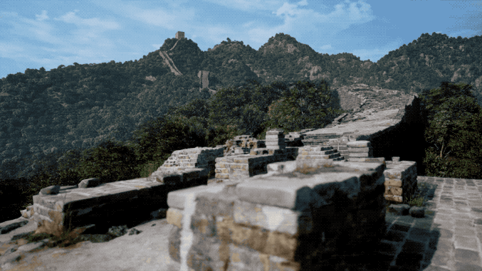 通过Nanite,数字长城便可以实现环境形态的“一镜到底”,多达10亿+面的数字资产不会发生明显地跳变。