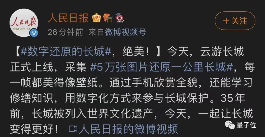 就连人民日报也用“绝美”来评价这座数字还原的长城: