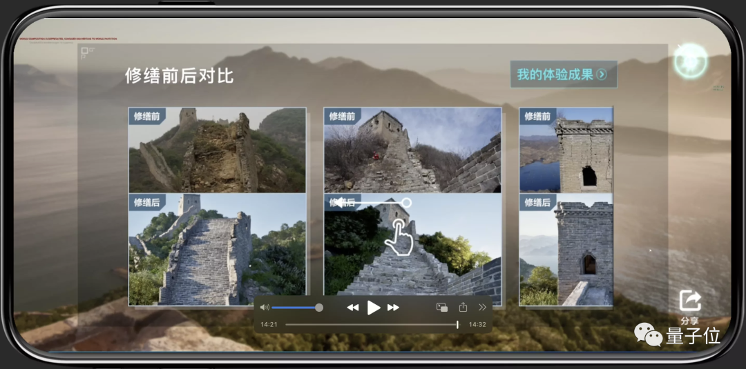 最后,在修缮长城之旅结束时,你还可以看下自己的劳动成果——数字长城会为你展现修缮前后的对比图。
