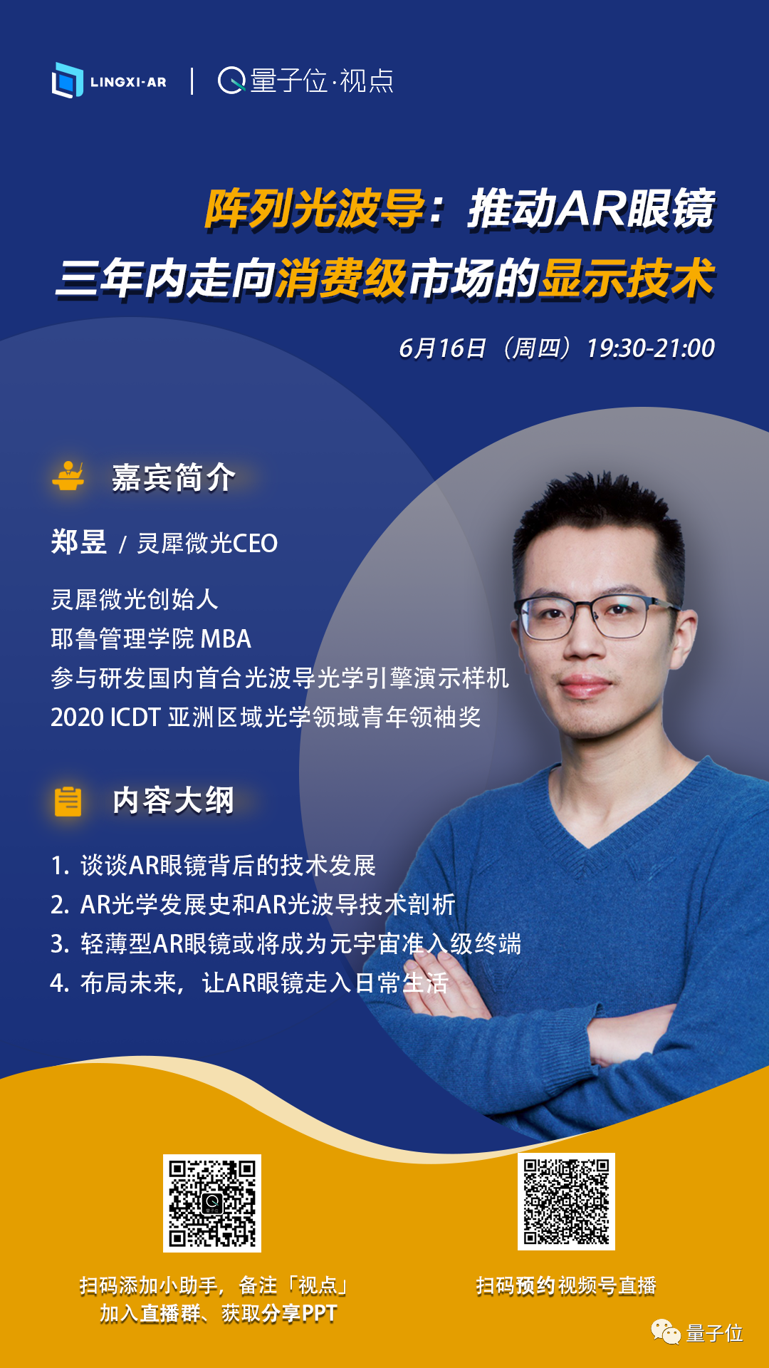 消费级AR设备的核心竞争力是什么?AR光学模组的技术原理是什么?其发展现状如何?你的第一副AR设备将会是什么样?6月16日,直播为大家揭晓~