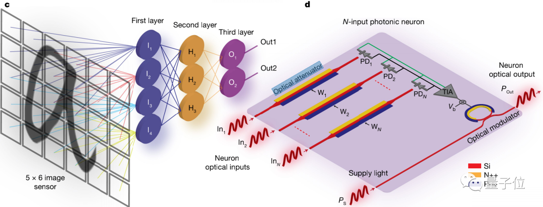 在每个神经元中,线性计算是通过光学方式进行的,而非线性激活函数是通过光电子方式实现的,从而可使分类时间低于570ps(=0.57ns)。