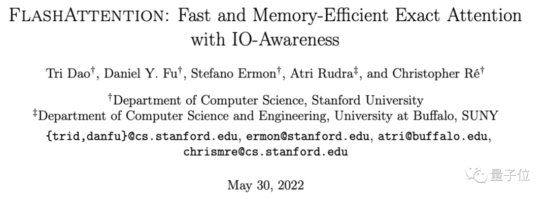 比如斯坦福&纽约州立大学布法罗分校团队提出的FlashAttention,给注意力算法加上IO感知能力,速度比PyTorch标准Attention快了2-4倍,所需内存也仅是其5%-20%。
