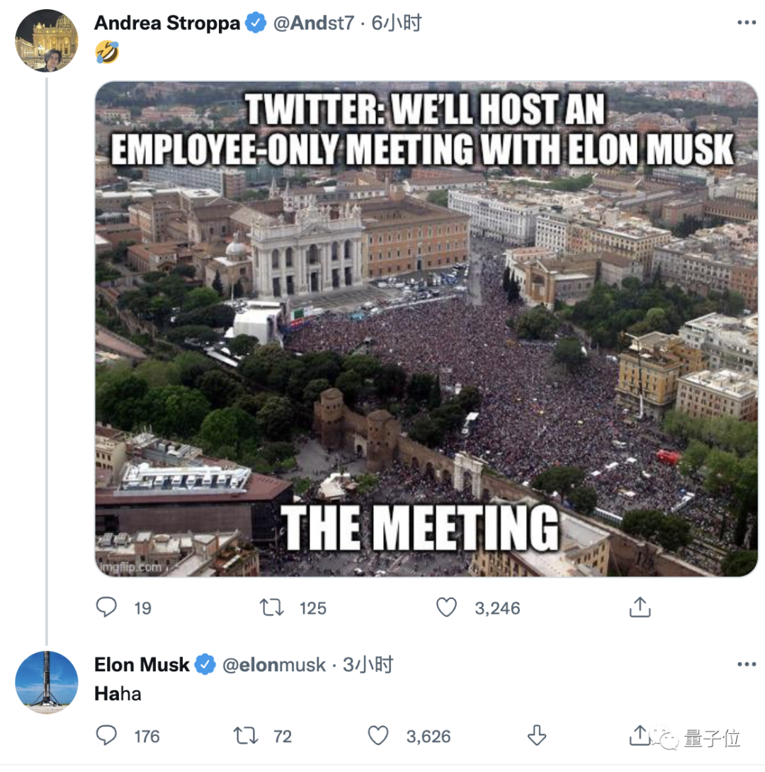 前脚会议结束,后脚马斯克就来到推特上进行高强度自搜。