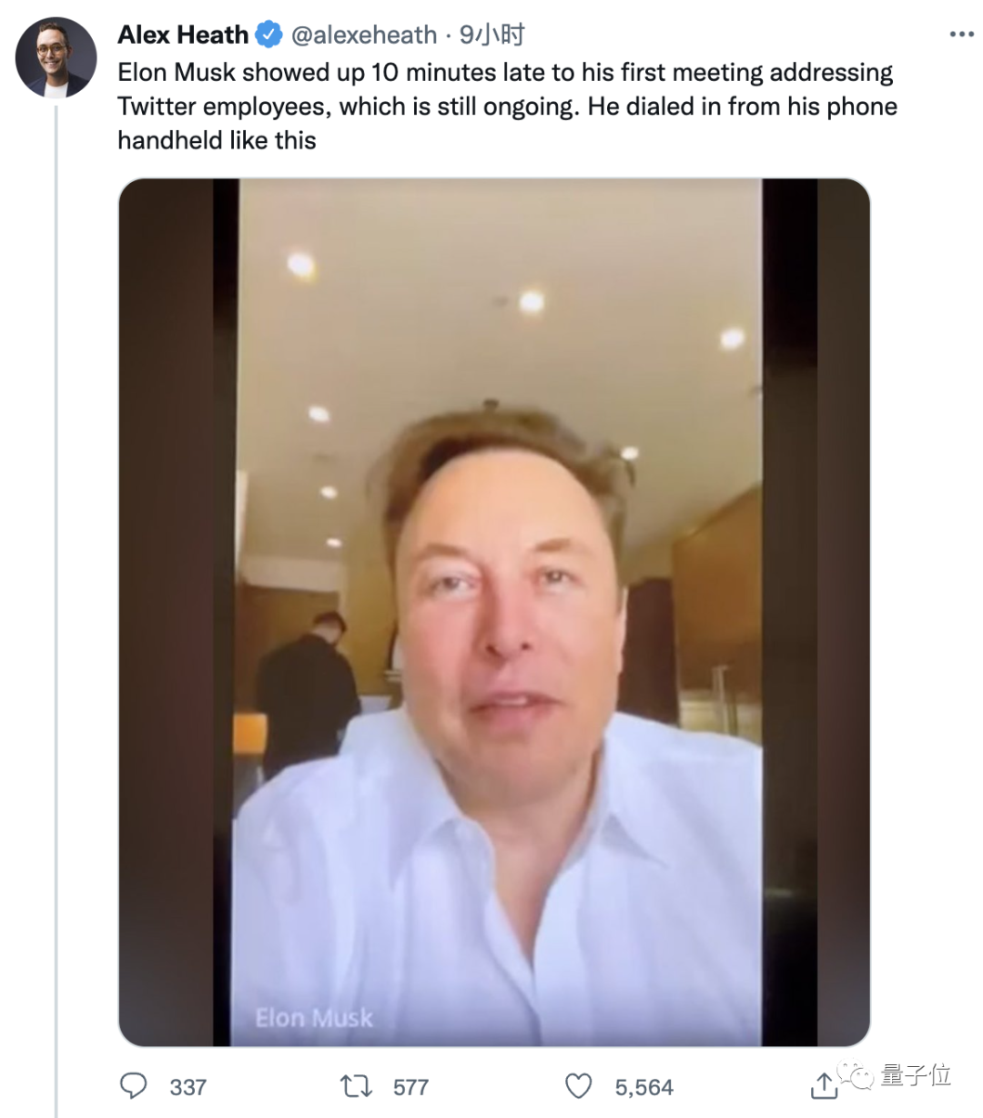 推特未来主人马斯克,首次参加员工大会就迟到了10分钟。