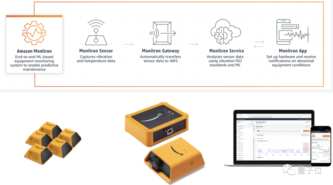 同样能提供端到端AI能力的还有Amazon Monitron,基础用法是监测工业设备的异常,更高级的是在设备出现真正问题之前就通过机器学习及时发现。