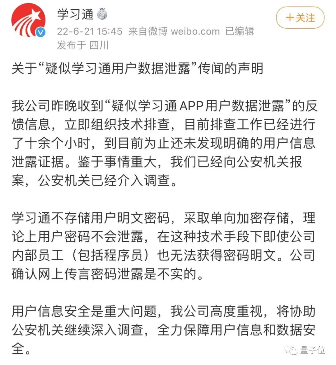 学习通回应“用户数据疑似泄露”传闻:尚未发现明确证据,已向公安机关报案