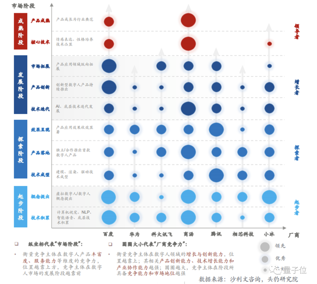 报告从起步、探索、发展、成熟四大阶段对七家主流数字⼈企业进行评估。