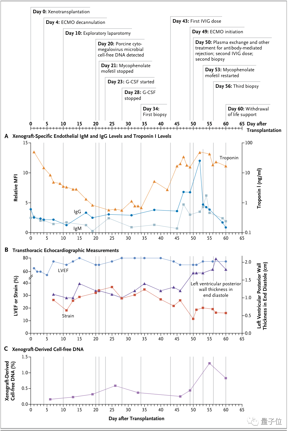 当时,随着血液中猪巨细胞病毒水平升高,医生一边使用了原本用于艾滋病患者巨细胞病毒感染的疗法,另一边还给患者注射了人类免疫球蛋白以增强抵抗力。