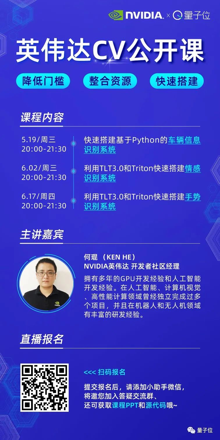 如何快速成为图像识别大神?英伟达专家手把手教你快速搭建AI模型并实现预训练、部署应用。理论+实战,开箱即用,欢迎扫码免费报名直播: