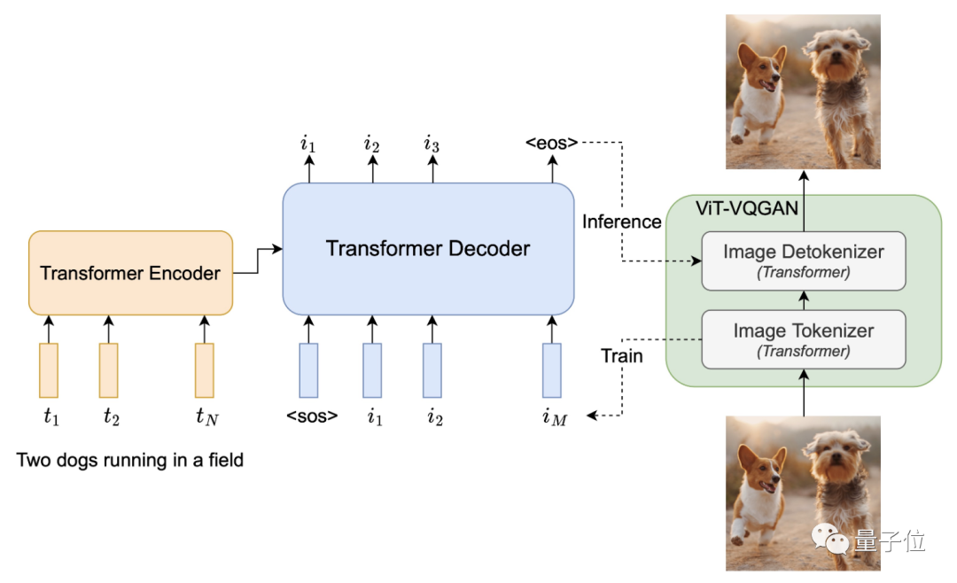 从结构上看,它的所有组件只有三部分:编码器、解码器以及图像标记器,且都是基于标准Transformer。