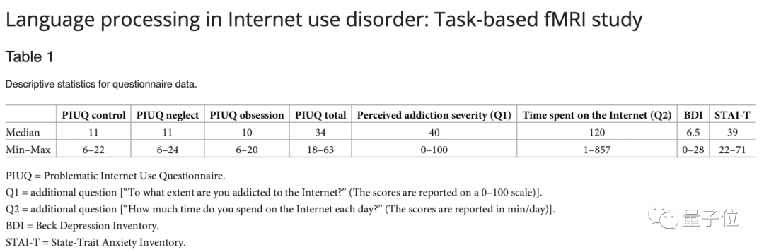 首先用互联网使用问卷(PIUQ),对60名实验对象的网络上瘾程度做出指数评估,然后对所有的参与者进行语言实验,并在这个过程中对实验对象的大脑进行核磁共振扫描。
