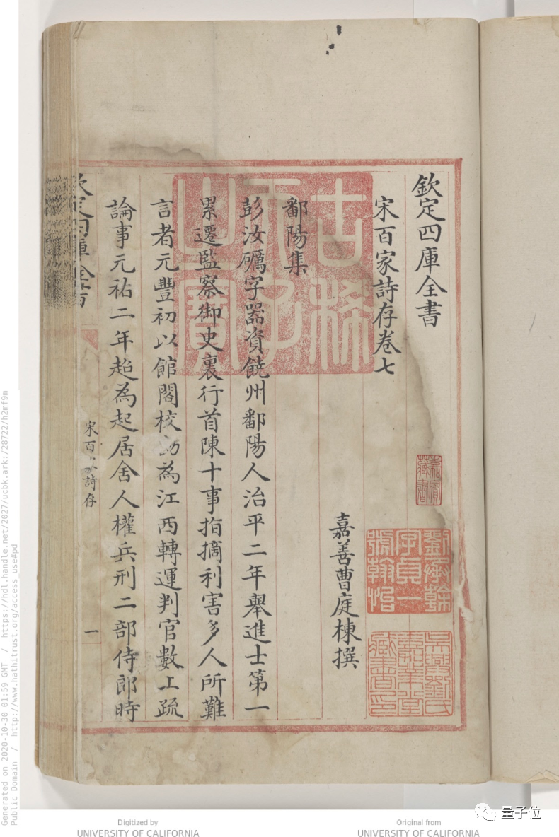 而这本《宋百家诗存》,正是丢失的文澜阁本《四库全书》之一。