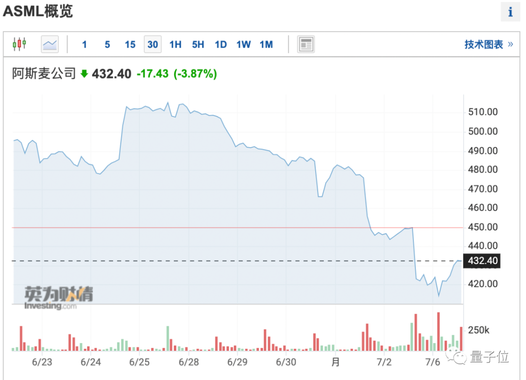 消息曝出之后,阿斯迈尔的美国存托凭证跌幅一度扩大到8.3%,截止到目前已经回落至3.87%。