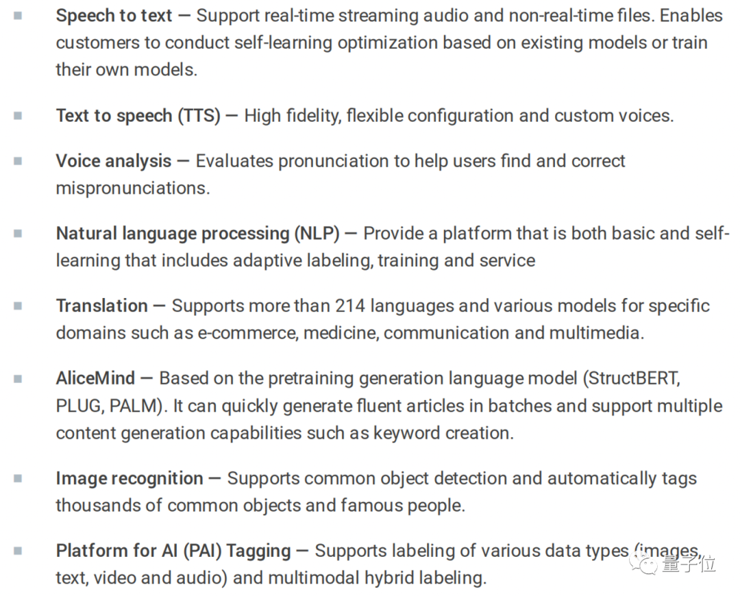 达摩院在语音AI领域最早以语音识别技术起家,技术能力涵盖语音识别声学模型和基础框架、说话人区分、语音合成声学模型和声码器、口语语言处理、联合优化的声学前端等。