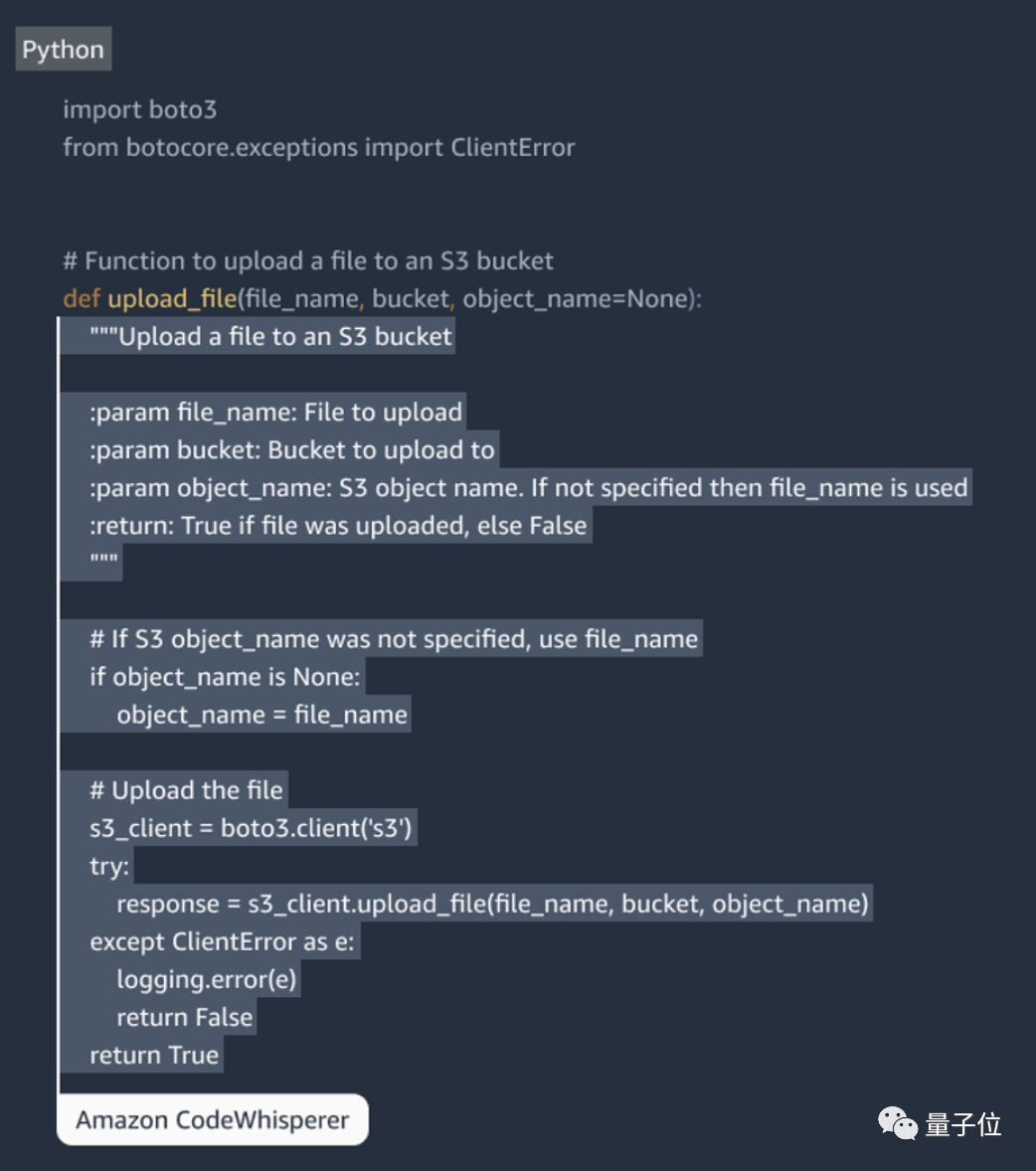 亚马逊开发者们展示了CodeWhisperer如何生成Python代码,效果如下: