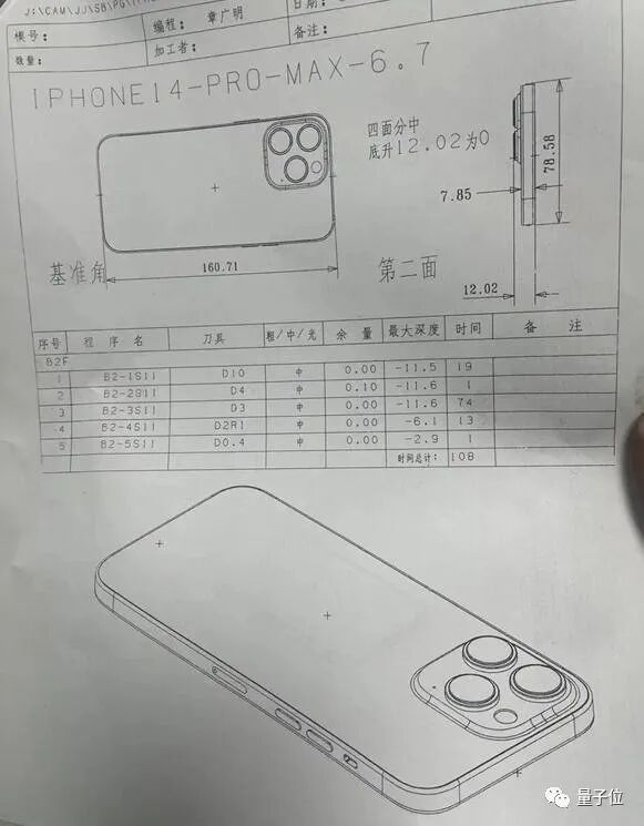 一位名为“苹果深圳富士康生产员”的网友曝光了为苹果 iPhone 14 Pro Max 配件开模的铝板图纸。