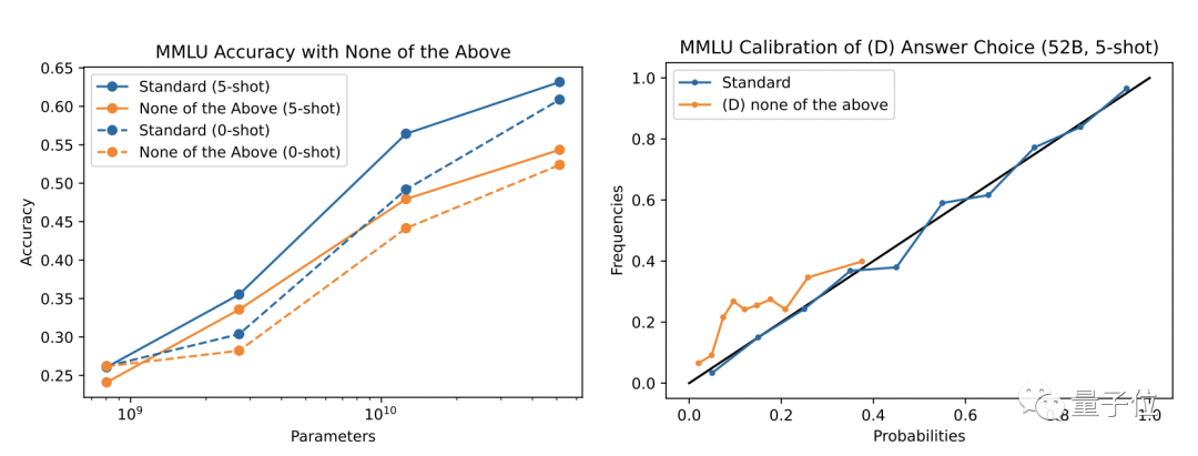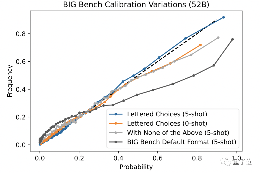 也就是说,在特定格式的选择题中,语言AI模型可以对答案进行很好的校准。