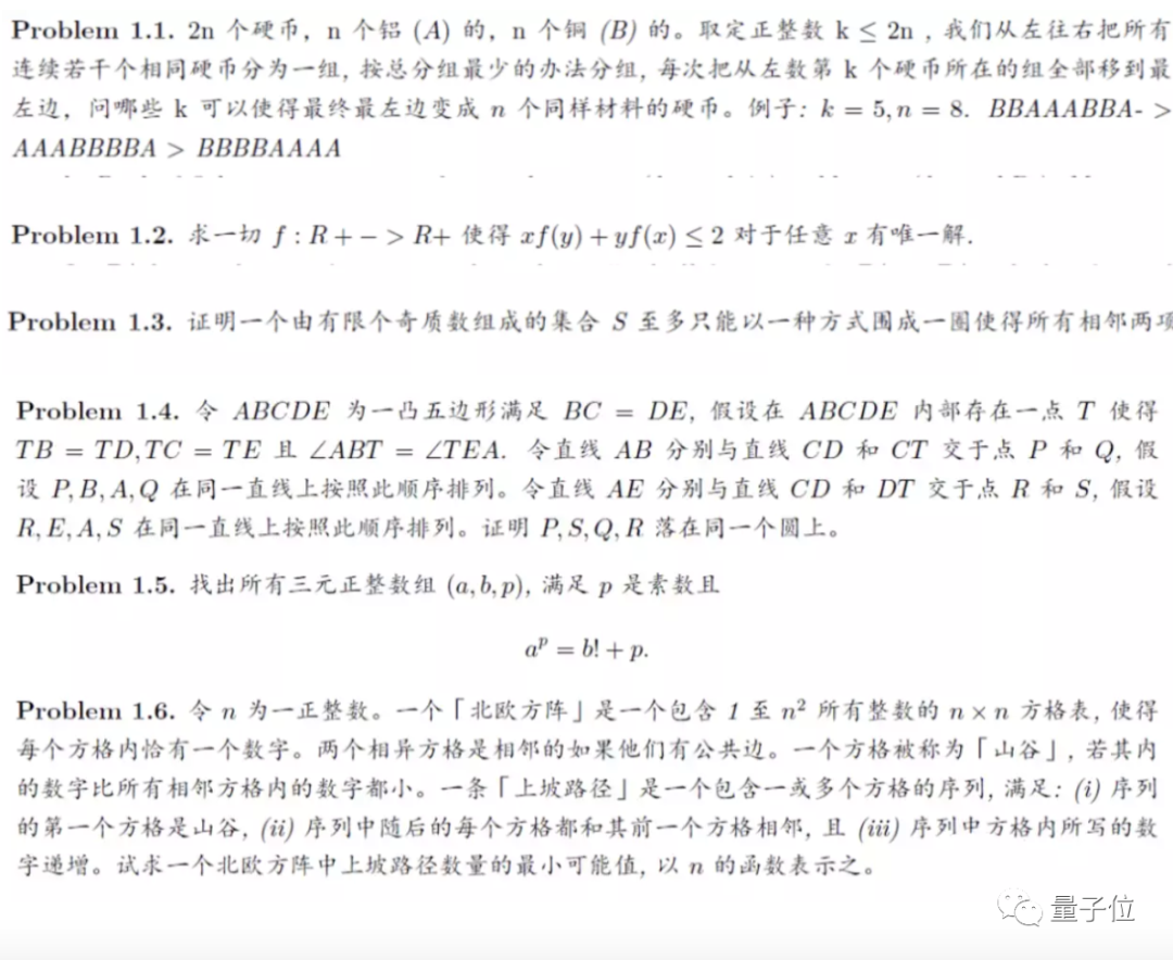 今年的六道题目涉及领域依次为:纯组合、代数、组合数论综合、几何、数论、组合。